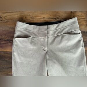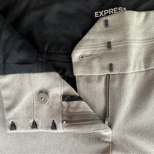 Express Mid-Rise Wide Waistband Editor Taupe Dress Pant Trouser, 4. 61% Poly, 34% Viscose, 5% Elastane mid-weight woven fabric. 2 front & 2 back pockets (all functional). Zip fly w/3 hook & bar closure. Wide waistband. Like new condition - no wear to note/like new.