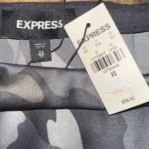 NWT , Never worn Express skirt. Elastic waist with side zipper. Black and gray camo pattern. Mid length.