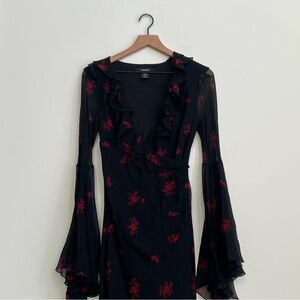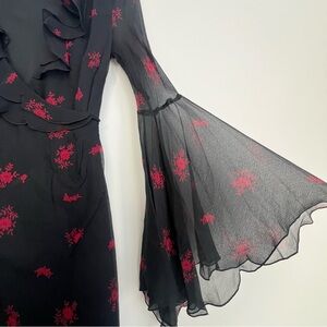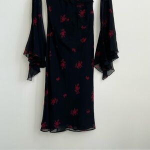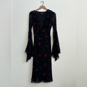 Express Midi Dress floral bell 100% Silk Whimsigoth Fairy Romantic Goth witch