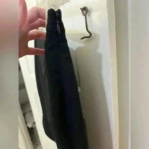 black skirt from express women's size 4 front is slightly shorter than the back, but overall super work appropriate length