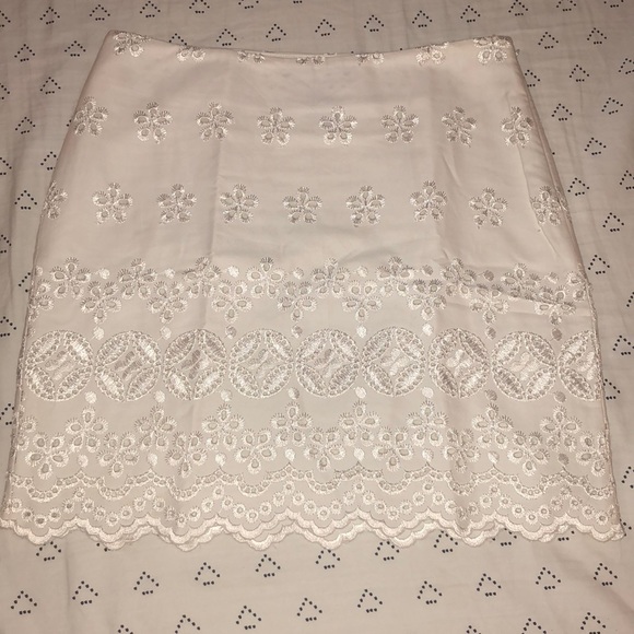 White detailed mini skirt. Side zipper. Beautiful detail. In PERFECT like new condition. Size 1/2