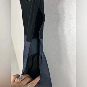Nice little mixed media dress by express with a cottony feel. The lower half of the dress is lined with a black slip. There are side seam pockets and a side zip. Easy care just throw it in the washing machine! Preloved but in excellent condition! See flat lay measurements before purchase