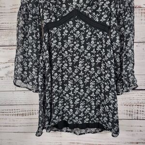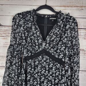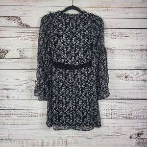 Express Mini Dress 0 Womens Long Sheer Sleeves V Neck Black White Back Zip