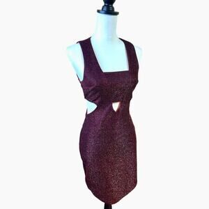 Express Mini Dress Dark Red Sparkle Festive Disco Cut Out Bodycon Dress Size 2