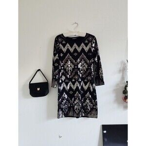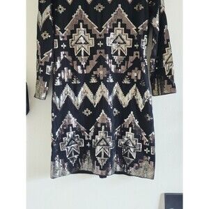 Express Mini Dress Woman's M Black Sequin Aztec Long Sleeve Formal Date Night