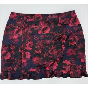 Express Mini Skirt 10 Red Floral Ruffle Party Date Holiday Romantic Feminine