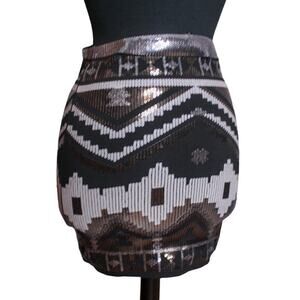 Express Mini Skirt Tribal Sequin Print Black White Silver Size XS