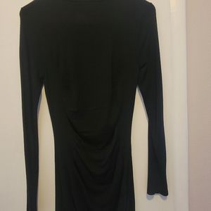 Black mini sweater dress with Ruched waist, light material, mock turtle neck, sexy with heels or cute with tights and boots!