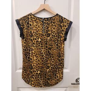 Express V-neck Leopard Print Blouse with Black Cap Sleeves