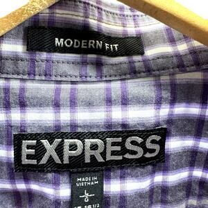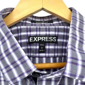Express Modern Fit Long Sleeve Button Purple Checkered Cotton Shirt – Mens Large