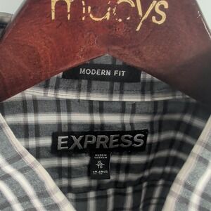 Express Modern Fit Plaid Western Button-Up Dress Shirt Gray White Size XL