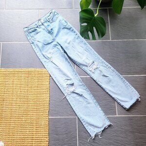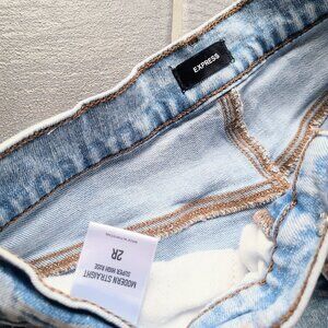 Express Modern Straight Super High Rise Light Blue Wash Distressed Denim Jean 2R
