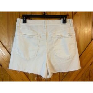 Express Mom Shorts. White. Raw hem. Ripped. Super High Rise. Stretch. NWT Size 10 (5672) Measurements: Waist 32” Inseam 2.5@ Rise 12”