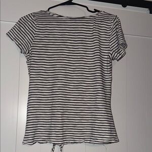 Chic V-neck tee with black and white stripes. Features a stylish tie-front. Ideal for everyday wear.