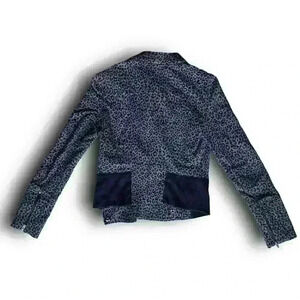Keywords: Express, jacket, motorcycle jacket, women's jacket, gray jacket, animal print, fall fashion, casual wear, evening wear, zip closure, long sleeve, cotton blend, machine washable, Vietnam, pre-owned