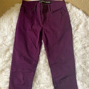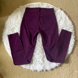 Mid Rise skinny ankle plum colored leggings in good used condition. 5 pocket. Measurements laying flat, waist is approximately 13. Inseam is approximately 4”. Bundle with other items for additional savings and feel free to make an offer😁
