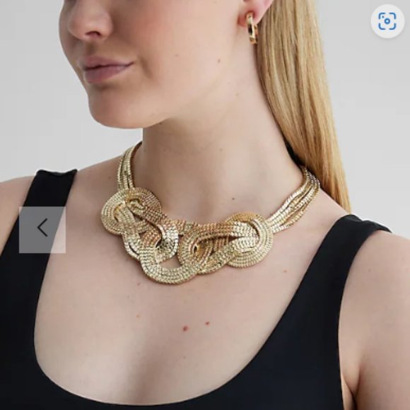 Express Multi Chain Woven Statement Necklace FEATURES & FABRIC: Multi-chain necklace Woven design 16" long + 2" extender Steel/Brass/CZ Color: Silver not Gold