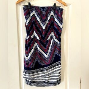 EUC excellent condition & quality by Express! Strapless mini dress. Elastic waist. Beautiful multi color pattern, polyester, double layered skirt. Measurements in photos. Women’s size small. Smoke free home