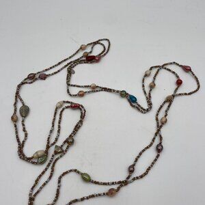 Express Multicolor Beaded Necklace With Glass & Metal Accents 24” Double Strand