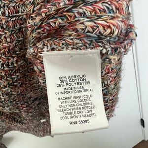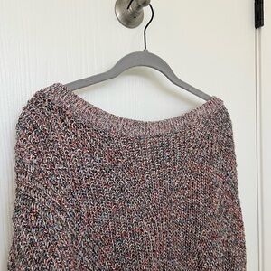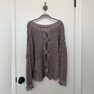 Express multicolor lightweight knit crew neck sweater, cute open keyhole detailing on back, oversized, slouchy, and soft. Perfect for spring and chilly summer nights.