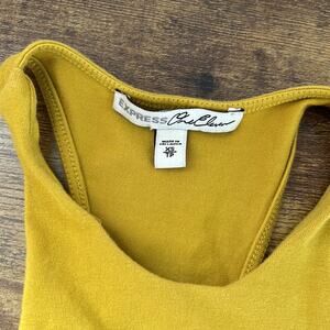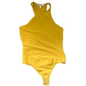 Express Mustard High Neck Racerback Thong Bodysuit
