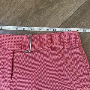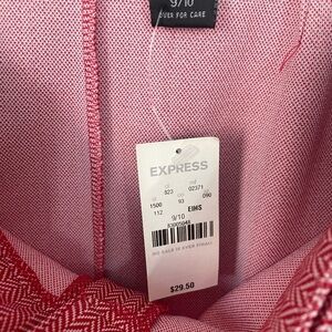 Get ready for the holiday season with this gorgeous red herringbone pencil skirt from Express. The skirt features a unique belt buckle accent and is made from a blend of polyester and nylon, ensuring both comfort and durability. It is knee-length, making it suitable for both formal and casual occasions.