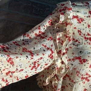 Express NEW -Sz M - cropped ruffled mock wrap shirt - balloon sleeves - see thru