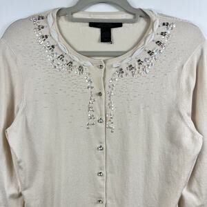 Express NWOT Cream Silk Cashmere Blend Cardigan Sweater Large Beaded Sequin
