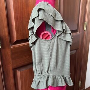 Express Gorgeous green blouse with flowing double layer ruffled shoulders