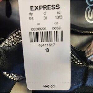 Express NWT Black Pointed Toe Rhinestone Bow Strappy Heels, Size 10