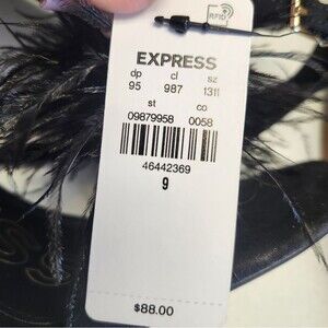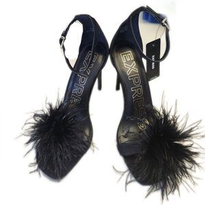 Express NWT Black Strappy Sandals, Feather Toe Accents, 4" Stiletto Heels, 9