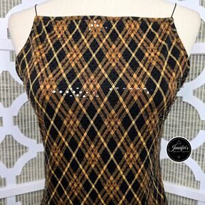 Express NWT Black/Gold/Brown Argyle Sequin Shimmer Tank Top Size Medium