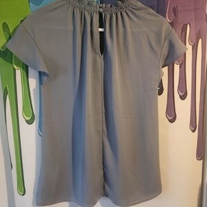 Chic blouse with a gathered neckline. Soft fabric for comfort. Ideal for versatile styling. So many ways you could wear this cute top, Capris, Dress Slacks or with a Shrug. It looks bluish gray to me although pictures look more grayish.