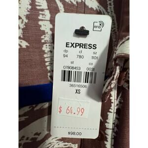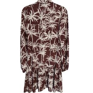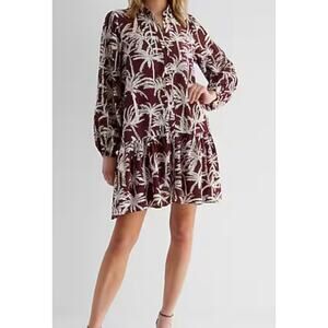 Express NWT Brown & white palm mini shirt dress Oversized flowy L/S tiered hem