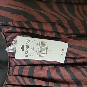Brown and black pleated sleeveless top. Animal print stripes, has keyhole opening in back with single button closure. Flowy at the bottom. Office, workplace, career, date night, flirty, dressy, classy, girly, exotic, fierce