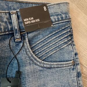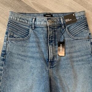 Express NWT Mom Jeans Super High Rise Moto Pockets Light Wash Women's 8