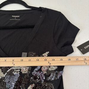 Express NWT Sequined Floral V-neck T-shirt Women S Rockability Y2K Fairy Goth