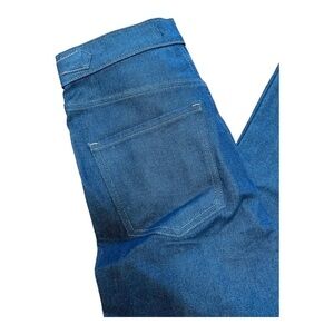 High waisted. Dark wash. Denim has a bit of shine to it, can be dresses up. Cute horse bits on each side of waistband. Ankle length. For reference I am 5.8 and wearing a size 6.