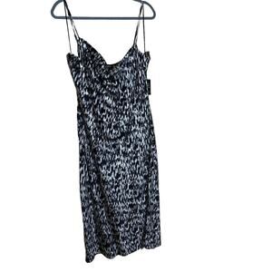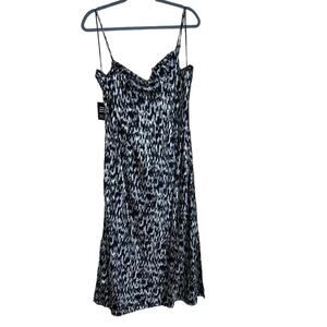 Express NWT Women Size XL Abstract Print Satin Cowl Neck Midi Slip Dress Silver