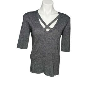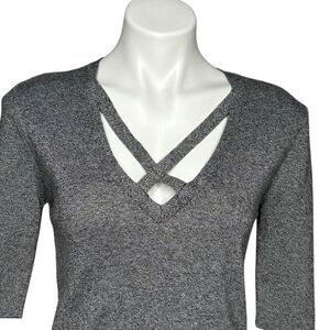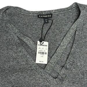 Express NWT black and gray marbled cross neck short sleeve sweater size LP