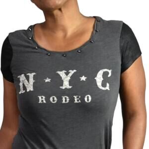 Express NYC Rodeo Tee Gray Black Size Short Sleeve Western Studded Size Small