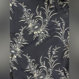 Express Navy Blue Floral Long Sleeve Shirt Stretch Extra Slim Sz M 15 - 15 1/2