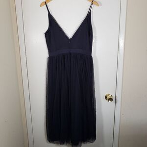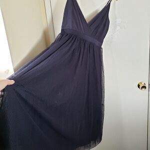 Express Navy Blue Mesh Chiffon Layered V Neck Sleeveless Adjustable Strap A Line Dress Size 8