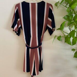 Express Navy Blue Pink White Striped V Neck Tie Waist Short Sleeve Romper M