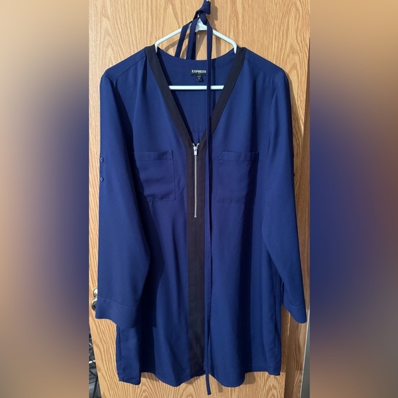 Express Navy Blue Shirt Dress with Black Strip and Belt