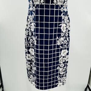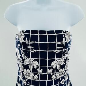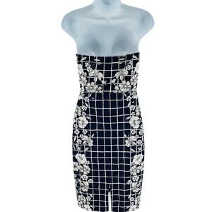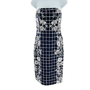 Express Navy Blue White Plaid Floral Strapless Garden Party Sheath Mini Dress 8