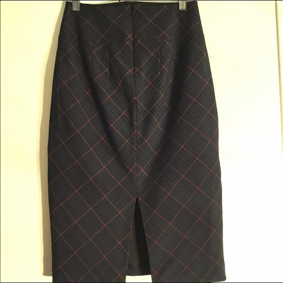 Navy Plaid With Red Stripe Detail. Sophisticated Work Wear. 25 From Top Of Waist (Midi). Never worn.