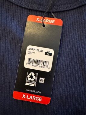 Classic ribbed tank from Express. Soft stretch fabric for comfort. Sleeveless design for easy layering. Versatile navy color pairs with many looks.