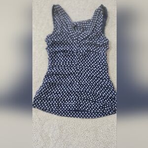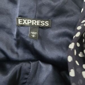 Express navy and white heart ruched sleevless blouse. Size medium. This top zips up the side. I wore this maybe two or three times. Like new condition! No call outs. Perfect for Valentine's Day and spring.
