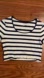 Trendy crop top with bold navy and white stripes. Perfect for casual wear. Soft and comfortable fabric.